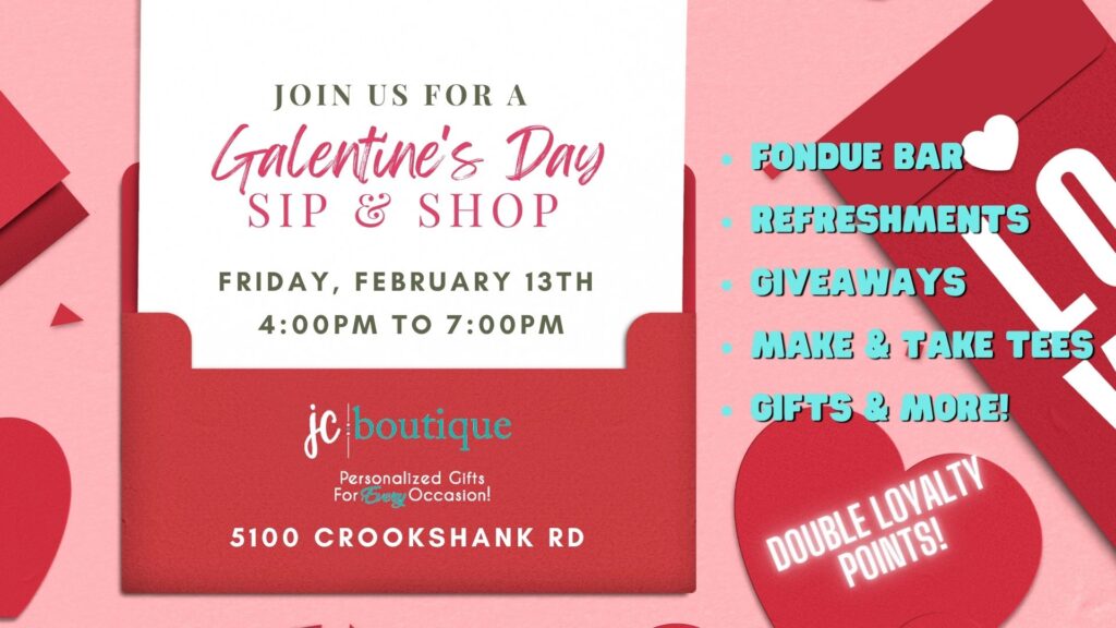 Join us at JC Boutique for a Galentine’s Day Sip & Shop filled with: