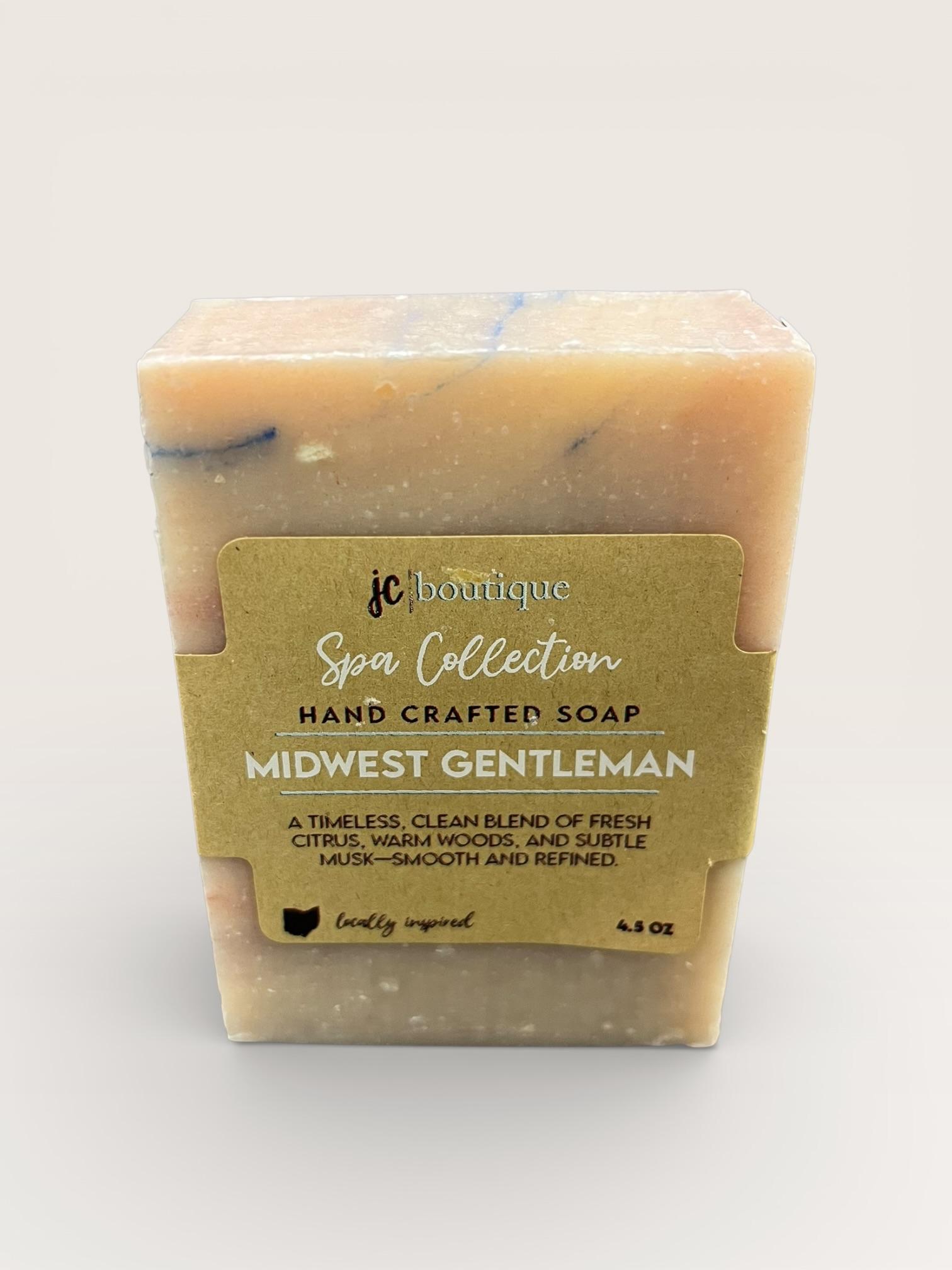Midwest Gentleman hand + body soap from JC Boutique’s Spa Collection. A classic barbershop scent inspired by Cincinnati.